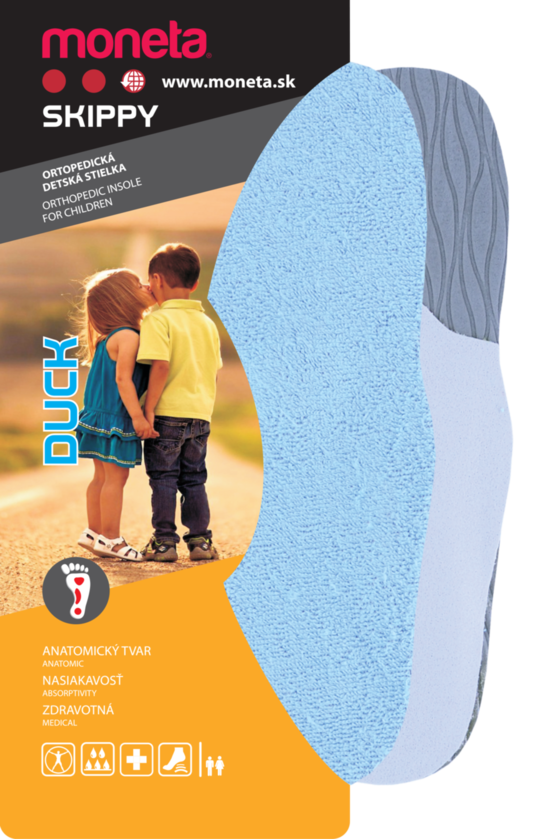 Детски влошки кои се направени од 100% памук и пена од латекс со одлични миризливи квалитети. Влошката е фиксирана на пластичен калап кој има задача да го поддржи лонгитудиналниот мост, додека пак карбосан калапот дава поддршка на вертикалниот мост. Во самата пета е вметнато и антишок перниче кое дава мекот при чекорењето